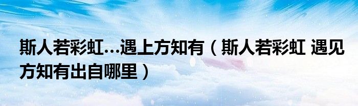 斯人若彩虹…遇上方知有(斯人若彩虹遇见方知有出自哪里)