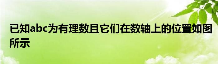 关于已知abc为有理数且它们在数轴上的位置如图所示这个很多人还不知道,今天菲菲来为大家解答以上的问题,现在让我们一起来看看吧!