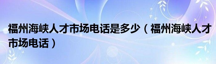 关于福州海峡人才市场电话是多少,福州海峡人才市场电话这个很多人还不知道,今天菲菲来为大家解答以上的问题,现在让我们一起来看看吧!