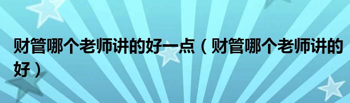关于财管哪个老师讲的好一点,财管哪个老师讲的好这个很多人还不知道,今天菲菲来为大家解答以上的问题,现在让我们一起来看看吧!