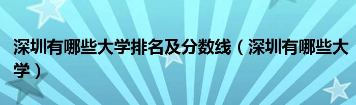 关于深圳有哪些大学排名及分数线,深圳有哪些大学这个很多人还不知道,今天菲菲来为大家解答以上的问题,现在让我们一起来看看吧!