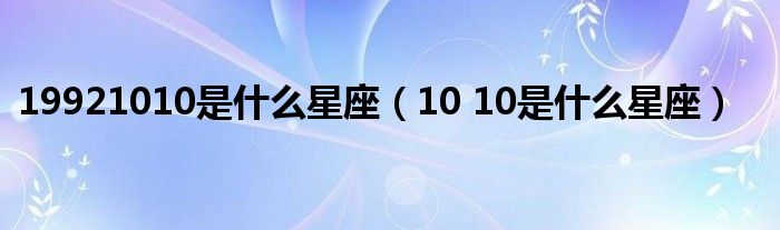 关于19921010是什么星座,10 10是什么星座这个很多人还不知道,今天菲菲来为大家解答以上的问题,现在让我们一起来看看吧!