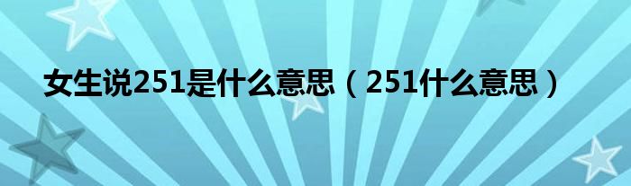 关于女生说251是什么意思,251什么意思这个很多人还不知道,今天菲菲来为大家解答以上的问题,现在让我们一起来看看吧!