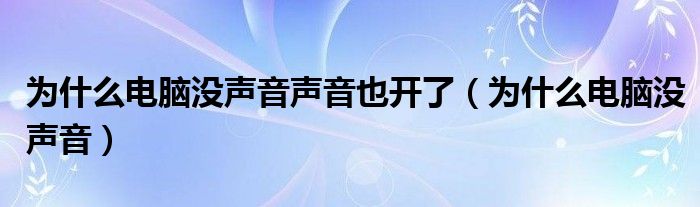 大家好,小飞来为大家解答以上问题,为什么电脑没声音声音也开了,为什么电脑没声音很多人还不知道,现在让我们一起来看看吧!