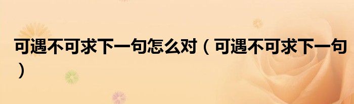 大家好,小晋来为大家解答以下问题,关于可遇不可求下一句怎么对,可遇不可求下一句很多人还不知道,今天让我们一起来看看吧!