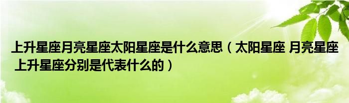 关于上升星座月亮星座太阳星座是什么意思,太阳星座 月亮星座 上升星座分别是代表什么的这个很多人还不知道,今天菲菲来为大家解答以上的问题,现在让我们一起来看看吧!