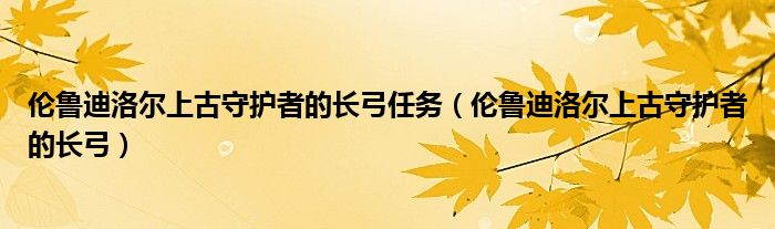 关于伦鲁迪洛尔上古守护者的长弓任务,伦鲁迪洛尔上古守护者的长弓这个很多人还不知道,今天菲菲来为大家解答以上的问题,现在让我们一起来看看吧!