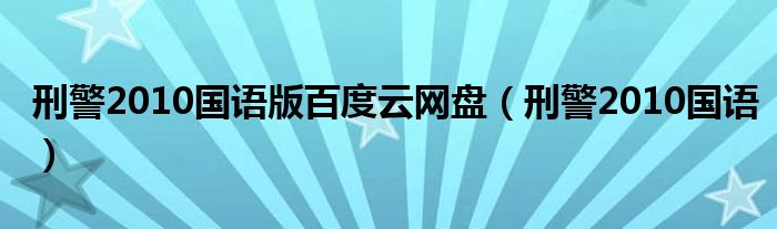 关于刑警2010国语版百度云网盘,刑警2010国语这个很多人还不知道,今天菲菲来为大家解答以上的问题,现在让我们一起来看看吧!