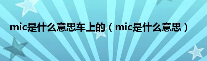 关于mic是什么意思车上的,mic是什么意思这个很多人还不知道,今天菲菲来为大家解答以上的问题,现在让我们一起来看看吧!