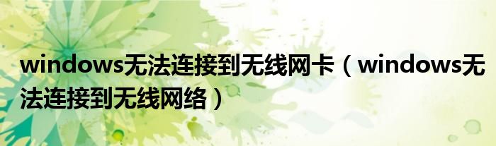 大家好,小飞来为大家解答以上问题,windows无法连接到无线网卡,windows无法连接到无线网络很多人还不知道,现在让我们一起来看看吧!