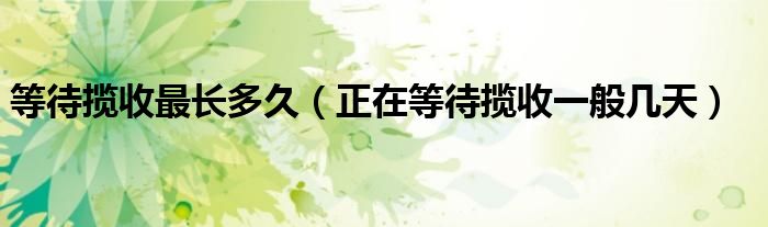 大家好,小晋来为大家解答以下问题,关于等待揽收最长多久,正在等待揽收一般几天很多人还不知道,今天让我们一起来看看吧!