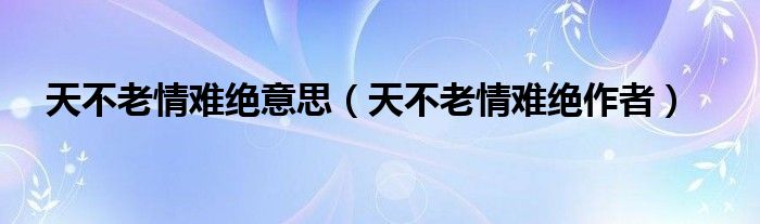 天不老情难绝意思,天不老情难绝作者很多人还不知道,乐乐来为大家解答以上问题,现在让我们一起来看看吧!