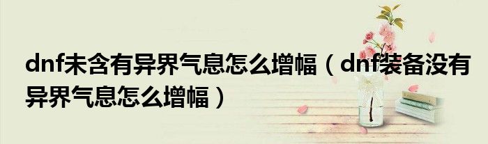 关于dnf未含有异界气息怎么增幅,dnf装备没有异界气息怎么增幅这个很多人还不知道,今天菲菲来为大家解答以上的问题,现在让我们一起来看看吧!