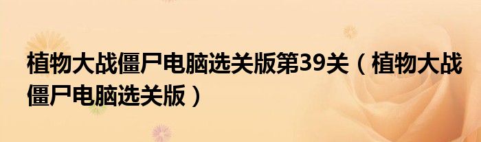 关于植物大战僵尸电脑选关版第39关,植物大战僵尸电脑选关版这个很多人还不知道,今天菲菲来为大家解答以上的问题,现在让我们一起来看看吧!