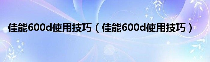 大家好,小飞来为大家解答以上问题,佳能600d使用技巧,佳能600d使用技巧很多人还不知道,现在让我们一起来看看吧!