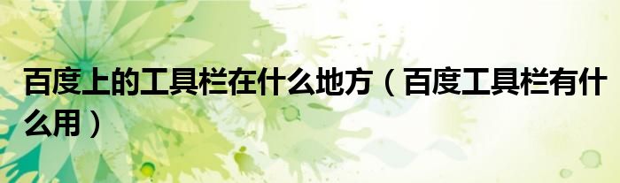 百度上的工具栏在什么地方,百度工具栏有什么用很多人还不知道,乐乐来为大家解答以上问题,现在让我们一起来看看吧!
