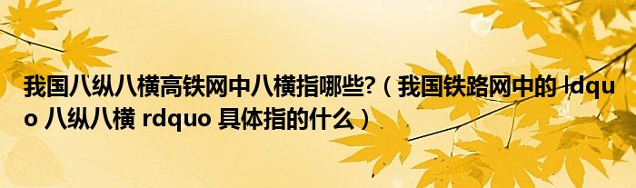 关于我国八纵八横高铁网中八横指哪些?,我国铁路网中的 ldquo 八纵八横 rdquo 具体指的什么这个很多人还不知道,今天菲菲来为大家解答以上的问题,现在让我们一起来看看吧!