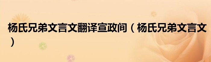 大家好,小晋来为大家解答以下问题,关于杨氏兄弟文言文翻译宣政间,杨氏兄弟文言文很多人还不知道,今天让我们一起来看看吧!