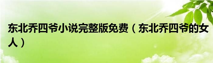 东北乔四爷小说完整版免费,东北乔四爷的女人这个很多人还不知道,小飞来为大家解答以上的问题。现在让我们一起来看看吧!