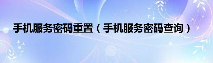 大家好,小飞来为大家解答以上问题,手机服务密码重置,手机服务密码查询很多人还不知道,现在让我们一起来看看吧!