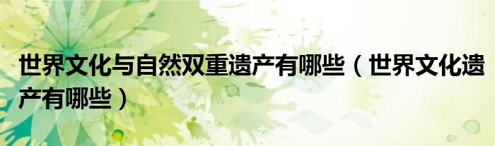 关于世界文化与自然双重遗产有哪些,世界文化遗产有哪些这个很多人还不知道,今天菲菲来为大家解答以上的问题,现在让我们一起来看看吧!