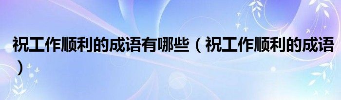 大家好,小晋来为大家解答以下问题,关于祝工作顺利的成语有哪些,祝工作顺利的成语很多人还不知道,今天让我们一起来看看吧!