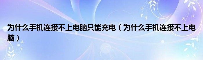 大家好,小飞来为大家解答以上问题,为什么手机连接不上电脑只能充电,为什么手机连接不上电脑很多人还不知道,现在让我们一起来看看吧!