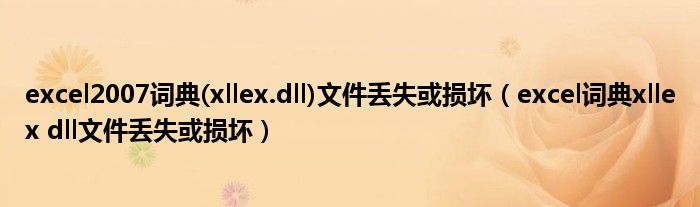 大家好,雨雨来为大家解答以上问题,excel2007词典(xllex.dll)文件丢失或损坏,excel词典xllex dll文件丢失或损坏很多人还不知道,现在让我们一起来看看吧!