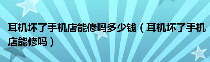大家好,小晋来为大家解答以下问题,关于耳机坏了手机店能修吗多少钱,耳机坏了手机店能修吗很多人还不知道,今天让我们一起来看看吧!