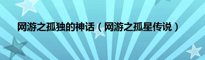 网游之孤独的神话,网游之孤星传说这个很多人还不知道,小飞来为大家解答以上的问题。现在让我们一起来看看吧!