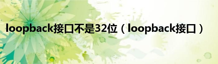 关于loopback接口不是32位,loopback接口这个很多人还不知道,今天菲菲来为大家解答以上的问题,现在让我们一起来看看吧!