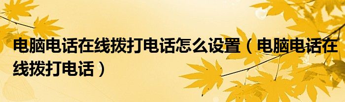 关于电脑电话在线拨打电话怎么设置,电脑电话在线拨打电话这个很多人还不知道,今天菲菲来为大家解答以上的问题,现在让我们一起来看看吧!