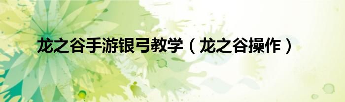 龙之谷手游银弓教学,龙之谷操作很多人还不知道,乐乐来为大家解答以上问题,现在让我们一起来看看吧!