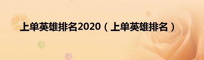 上单英雄排名2020,上单英雄排名很多人还不知道,乐乐来为大家解答以上问题,现在让我们一起来看看吧!
