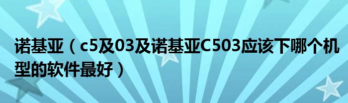 1,诺基亚C503应该下哪个机型的软件最好:诺基亚的通用软件就是用系统分,比如你是S60第五版,你就找S60第五版的通用软件。像常用软件一般都可以找到你自己对应型号的软件。