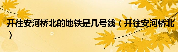 大家好,小晋来为大家解答以下问题,关于开往安河桥北的地铁是几号线,开往安河桥北很多人还不知道,今天让我们一起来看看吧!