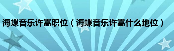 大家好,小晋来为大家解答以下问题,关于海蝶音乐许嵩职位,海蝶音乐许嵩什么地位很多人还不知道,今天让我们一起来看看吧!