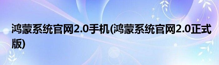 大家好,小常来为大家解答以上问题。鸿蒙系统官网2.0手机(鸿蒙系统官网2.0正式版)很多人还不知道,现在让我们一起来看看吧!