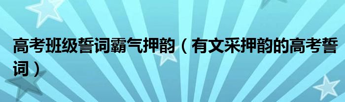 大家好,小晋来为大家解答以下问题,关于高考班级誓词霸气押韵,有文采押韵的高考誓词很多人还不知道,今天让我们一起来看看吧!