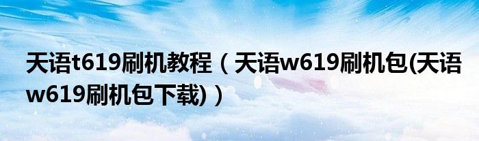 大家好,小常来为大家解答以上问题。天语t619刷机教程,天语w619刷机包(天语w619刷机包下载)很多人还不知道,现在让我们一起来看看吧!