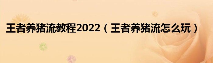 关于王者养猪流教程2022,王者养猪流怎么玩这个很多人还不知道,今天菲菲来为大家解答以上的问题,现在让我们一起来看看吧!