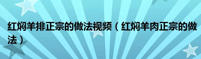 大家好,小晋来为大家解答以下问题,关于红焖羊排正宗的做法视频,红焖羊肉正宗的做法很多人还不知道,今天让我们一起来看看吧!