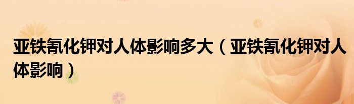 大家好,小晋来为大家解答以下问题,关于亚铁氰化钾对人体影响多大,亚铁氰化钾对人体影响很多人还不知道,今天让我们一起来看看吧!
