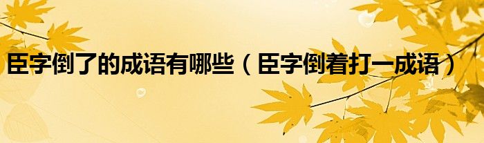 大家好,小晋来为大家解答以下问题,关于臣字倒了的成语有哪些,臣字倒着打一成语很多人还不知道,今天让我们一起来看看吧!
