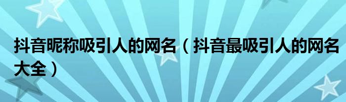 大家好,雨雨来为大家解答以上问题,抖音昵称吸引人的网名,抖音最吸引人的网名大全很多人还不知道,现在让我们一起来看看吧!