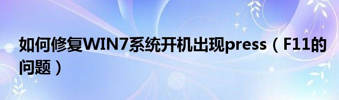 大家好,今天小悦来为大家解答以上问题。如何修复WIN7系统开机出现press,F11的问题很多人还不知道,现在让我们一起来看看吧!