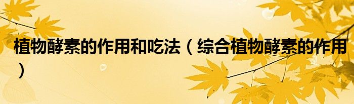 关于植物酵素的作用和吃法,综合植物酵素的作用这个很多人还不知道,今天菲菲来为大家解答以上的问题,现在让我们一起来看看吧!