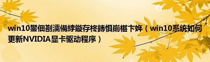 大家好,今天小悦来为大家解答以上问题。win10鐢佃剳濡備綍鏇存柊鏄惧崱椹卞姩,win10系统如何更新NVIDIA显卡驱动程序很多人还不知道,现在让我们一起来看看吧!