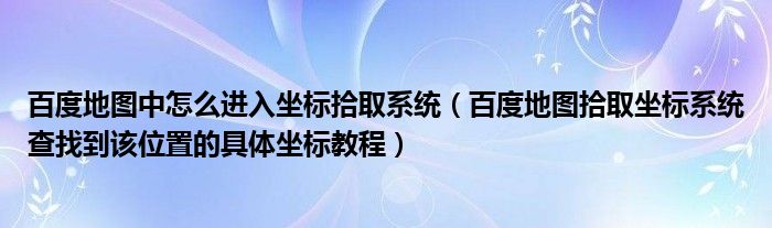 百度地图中怎么进入坐标拾取系统(百度地图拾取坐标系统查找到该位置的具体坐标教程)