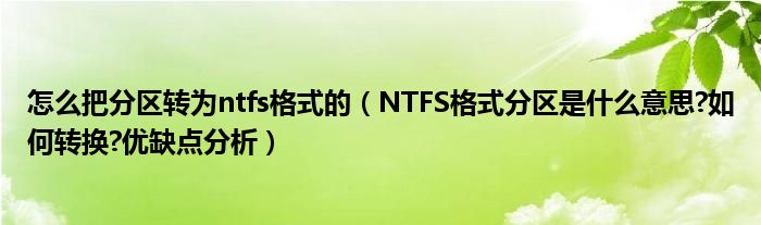 大家好,今天小悦来为大家解答以上问题。怎么把分区转为ntfs格式的,NTFS格式分区是什么意思?如何转换?优缺点分析很多人还不知道,现在让我们一起来看看吧!